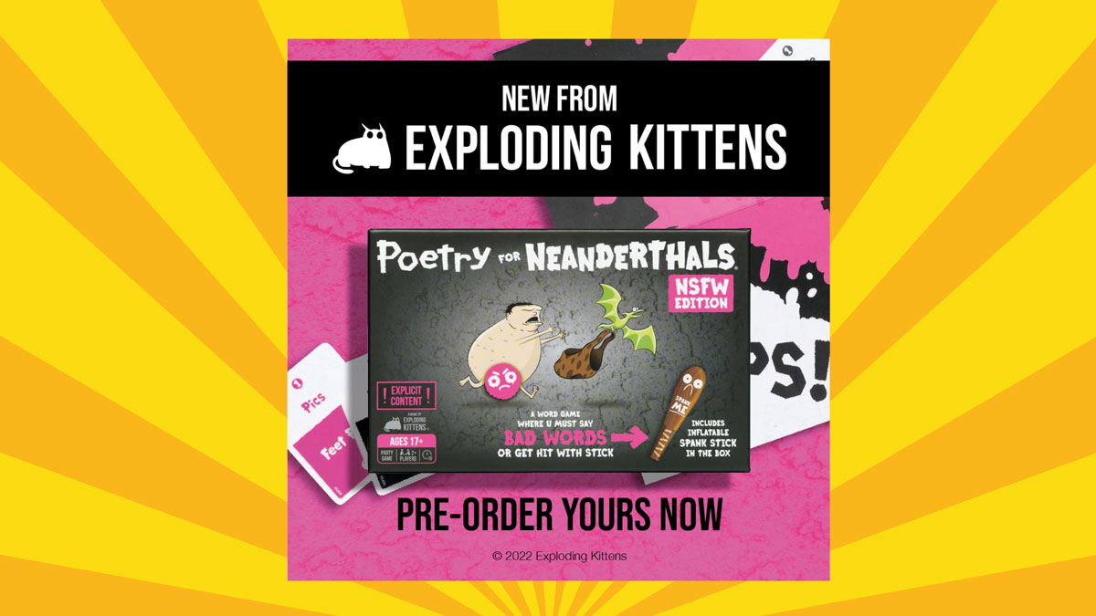 Exploding Kittens, the tabletop game creator, is bringing two new games to the table this Spring – Zombie Kittens and Poetry for Neanderthals: Not Safe for Work Edition. On a mission to ignite game night in households up and down the country, the two new titles come hot on the heels of newly launched Mantis and UK-exclusive Exploding Kittens: Cat Burglar Edition and are being offered exclusively to the hobby and independent sector for the first two weeks of launch!